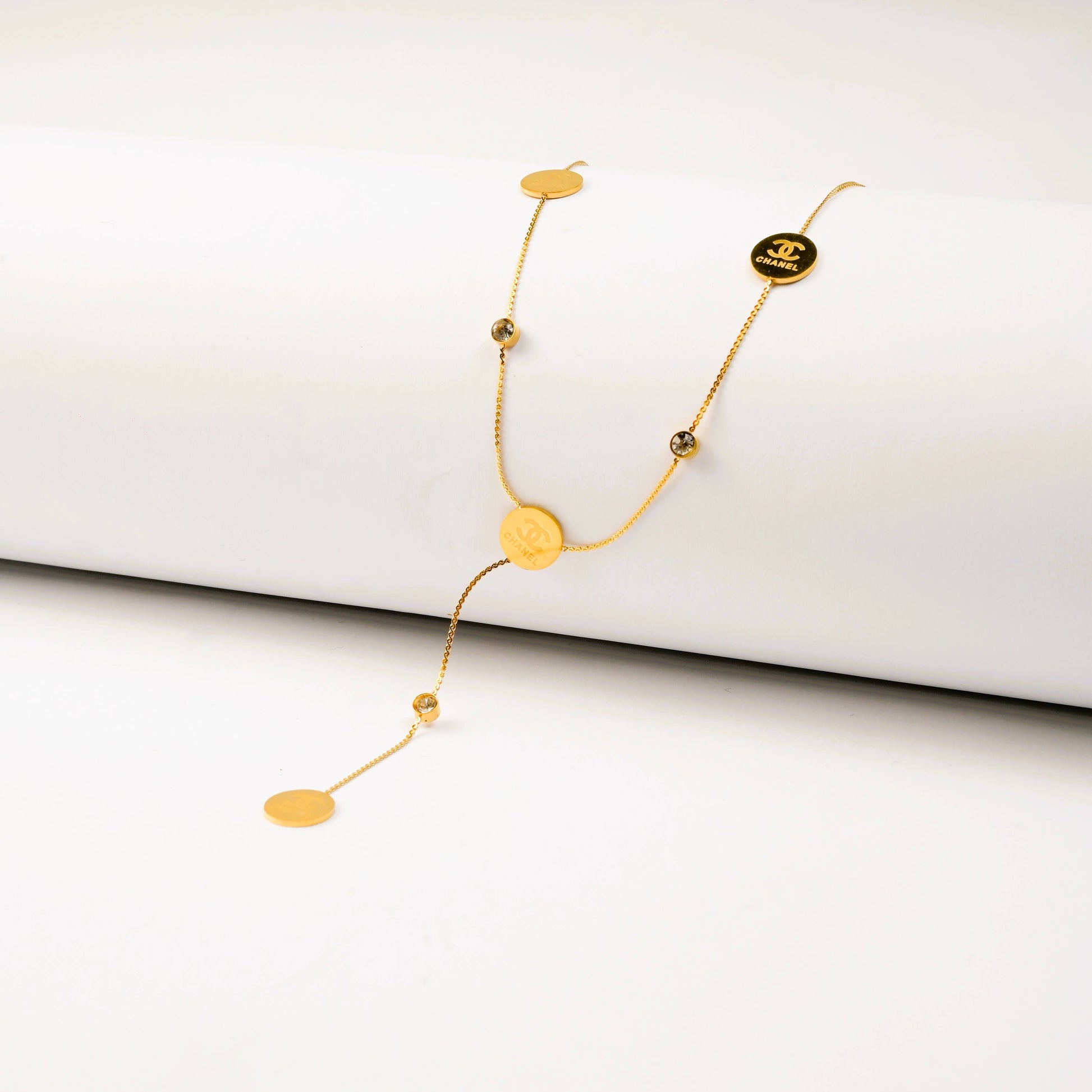 Elevate your jewelry collection with this Coin Pendant Necklace with Crystal Accents, crafted with premium gold-plated material for a radiant shine. Featuring multiple coin-style pendants adorned with sparkling crystal details, this layered design adds depth, texture, and elegance — perfect for both casual wear and evening occasions.