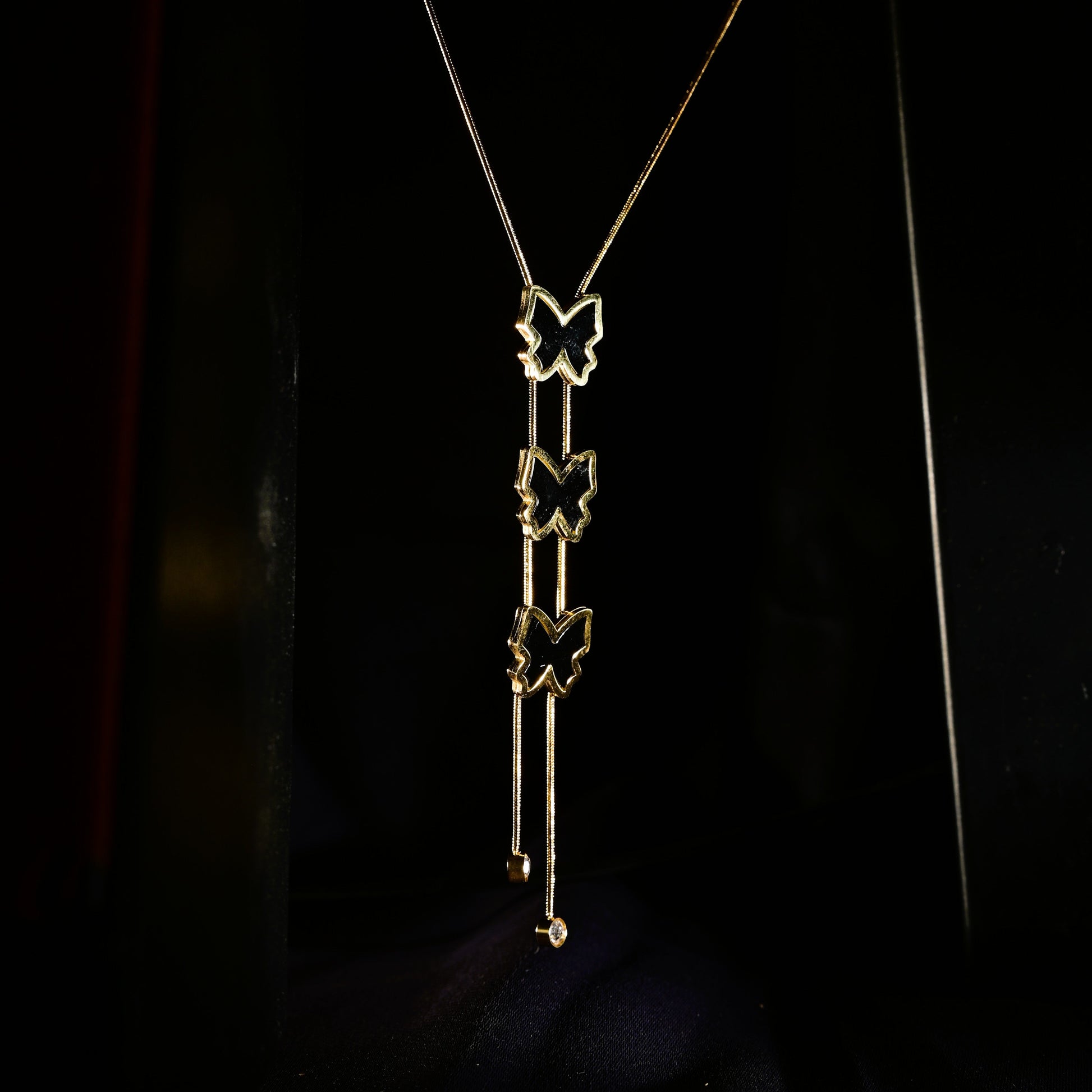 Design: Three butterfly pendants in a cascading arrangement