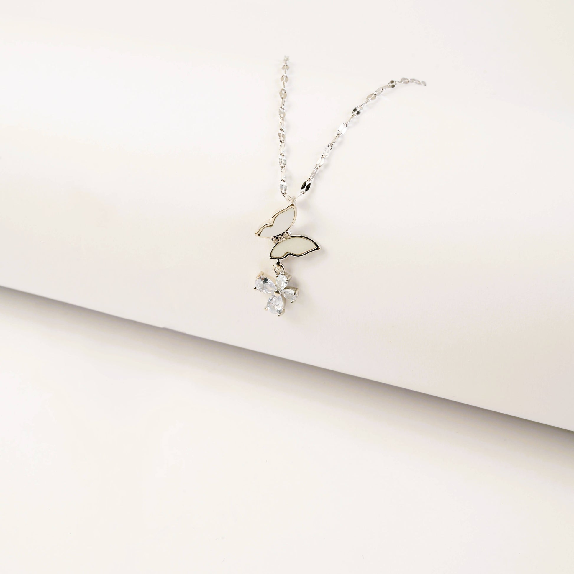 Add a touch of sparkle and elegance with this Butterfly and Crystal Pendant Necklace, crafted with premium silver-plated material for a polished, lasting shine. Featuring a graceful butterfly design paired with a shimmering crystal accent, this necklace beautifully captures both delicacy and brilliance.